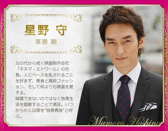 その主人公・星野守(草彅剛)“独身貴族”。父の代から続く映画製作会社の社長をつとめ、クリエイティブな能力に秀でた映画作りのプロフェッショナルであるものの、人にペースを乱されることを好まないため、独身であることに満足しているのだった。