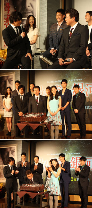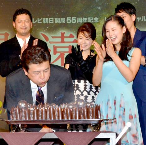 テレビ朝日開局55周年記念二夜連続スペシャルドラマ「最も遠い銀河」の完成披露試写会が28日、東京都内で行われ、出演者の三浦友和、伊藤英明、小西真奈美、中村ゆりらが登壇。蒼井優は、体調不良で欠席した。