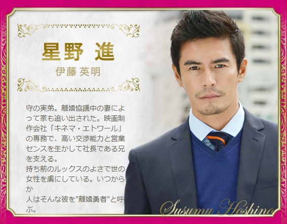 そんな守の弟・星野進(伊藤英明)は兄と同じ映画製作会社で働き、高い交渉能力と営業センスを生かして兄を支える一方で、兄とは違い結婚をする。しかし、現在離婚調停中で家から追い出されているという。そのような状況にもめげず、持ち前のルックスのよさで恋愛にも忙しい。そんな彼を人は“離婚勇者”と呼ぶ。